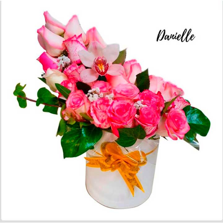 contiene: hermosas rosas primaverales, orquídea, gipsofilia