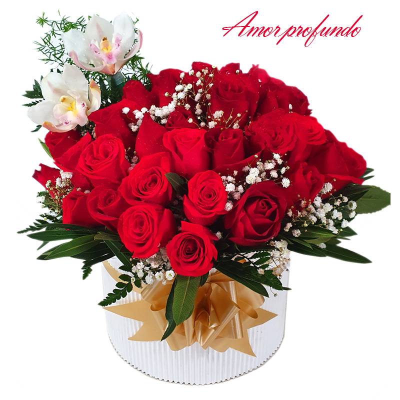 Arreglo floral con rosas rojas y orquídeas. Ideal para sorprender a esa persona especial.