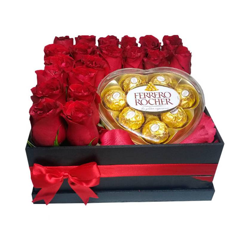 de rosas y chocolates en forma de corazon