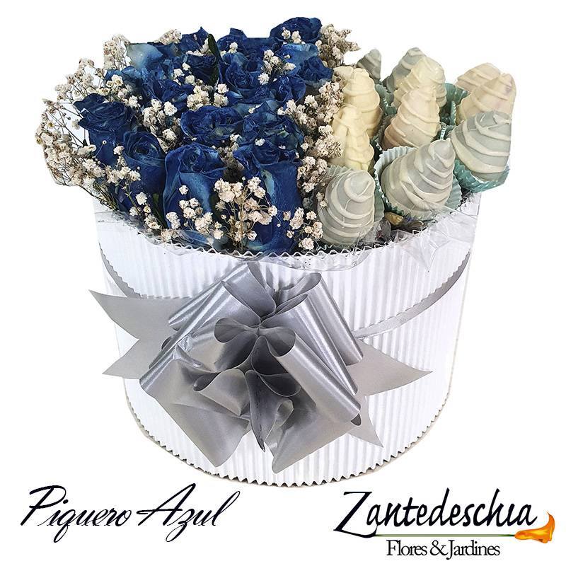 Ideal para compartir con la persona especial, con rosas azules y fresas con chocolate.